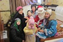 Вручили деньги сами школьники, переодевшись в Деда Мороза и Снегурочку.