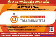 В рамках Декады инвалидов со 2 по 10 декабря проводится акция "Тотальный тест "Доступная среда",которая призвана привлечь внимание к правам и потребностям людей с инвалидностью. Тестирование проводится в онлайн-формате. Оно включает в себя вопросы по нескольким темам: - создание доступной среды; - этика общения с людьми с инвалидностью; - правила оказания ситуационной помощи.