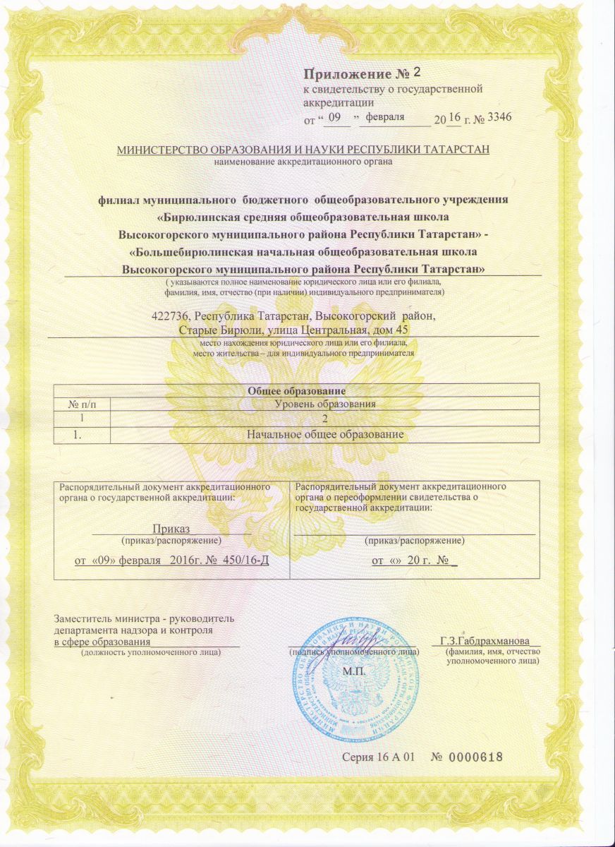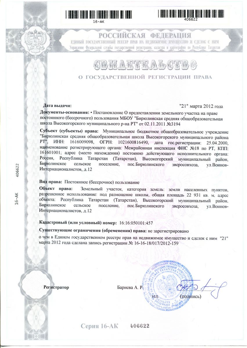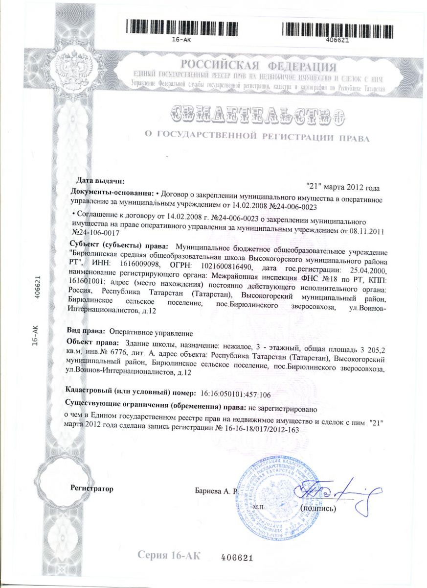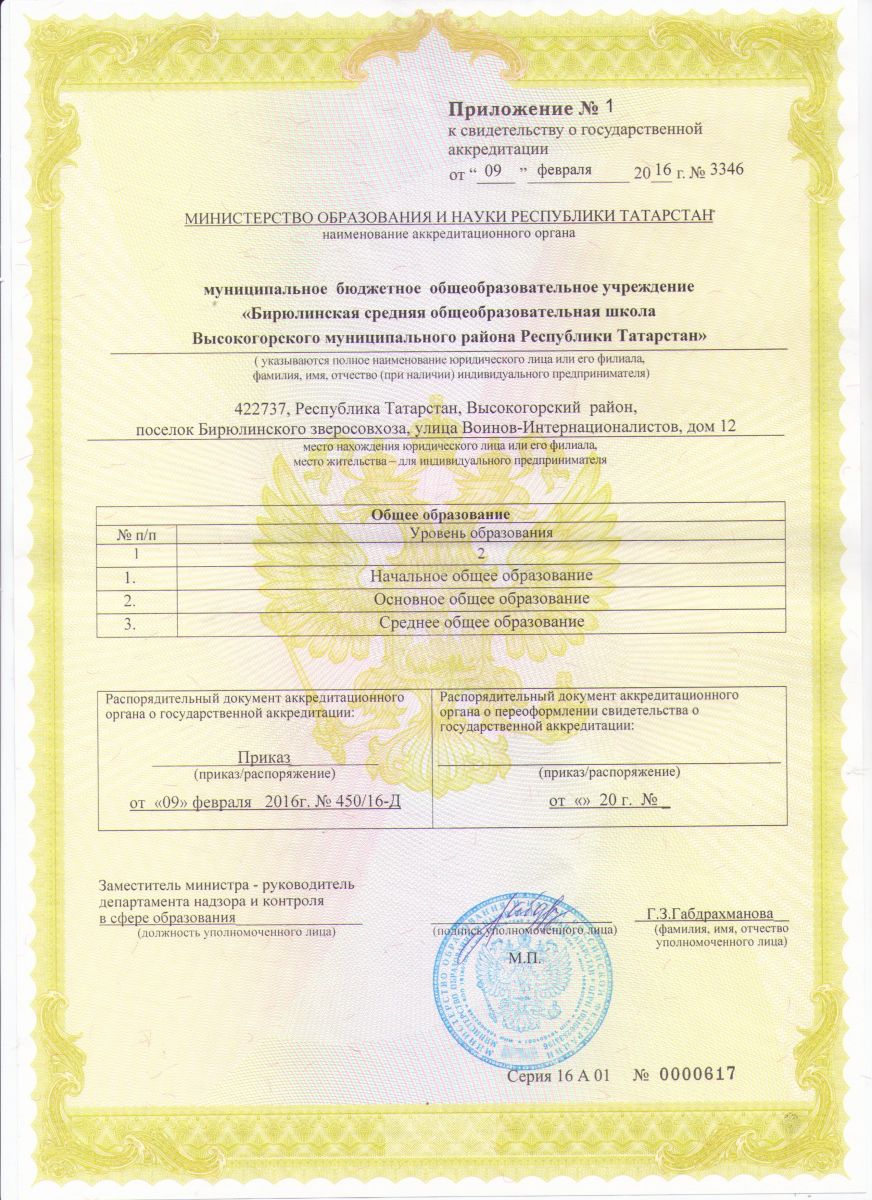 Муниципальное бюджетное общеобразовательное учреждение "Бирюлинская средняя общеобразовательная школа Высокогорского муниципального района Республики Татарстан"