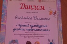Ученица 1 класса Яковлева Виктория стала победителем республиканского конкурса «Лучший культурный дневник первоклассника»
