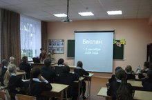 3 сентября в каждом классе прошел классный час, посвященный детям Беслана. В начальных классах дети изготовили голубей. Голубь является символом мира, борьбы против войны, насилия, тревог и слез. В средних и старших классах учащиеся написали свое пожелание мира для всех людей нашей большой планеты. Дети прослушали отрывки из воспоминаний детей о том страшном дне и высказали своё мнение, впечатления.