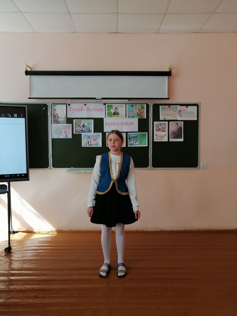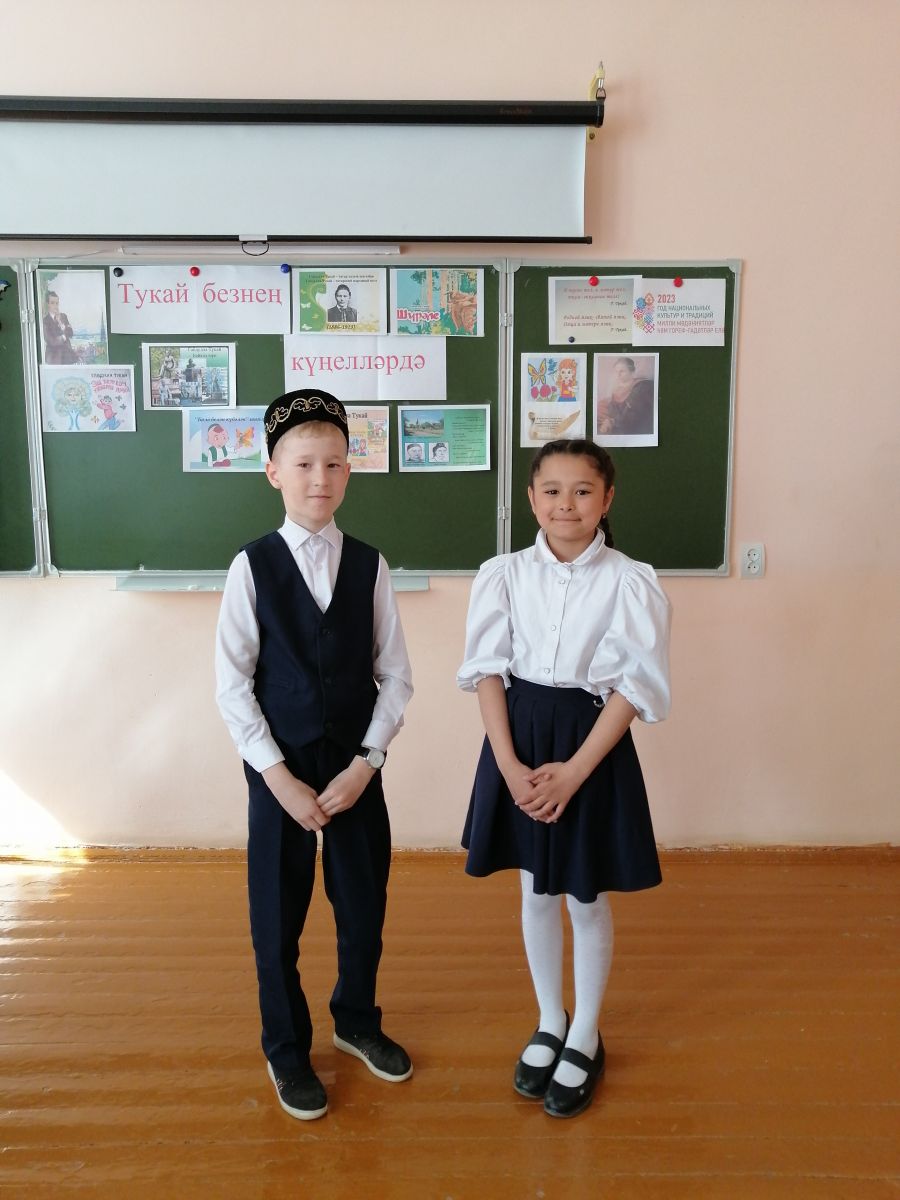 26 апрельдә бөтен татар дөньясы күренекле шагыйрь Габдулла Тукайның туган көнен билгеләп үтә. Безнең мәктәптә дә әлеге көнне шигърият бәйрәме “Тукай безнең күңелләрдә” дигән чара белән билгеләп үттек. Әлеге чарада башлангыч сыйныф укучылары катнашты. Алар Тукай шигырьләренә сәяхәт иттеләр.