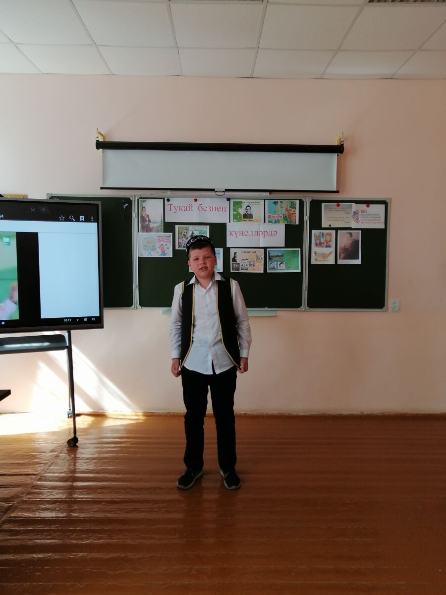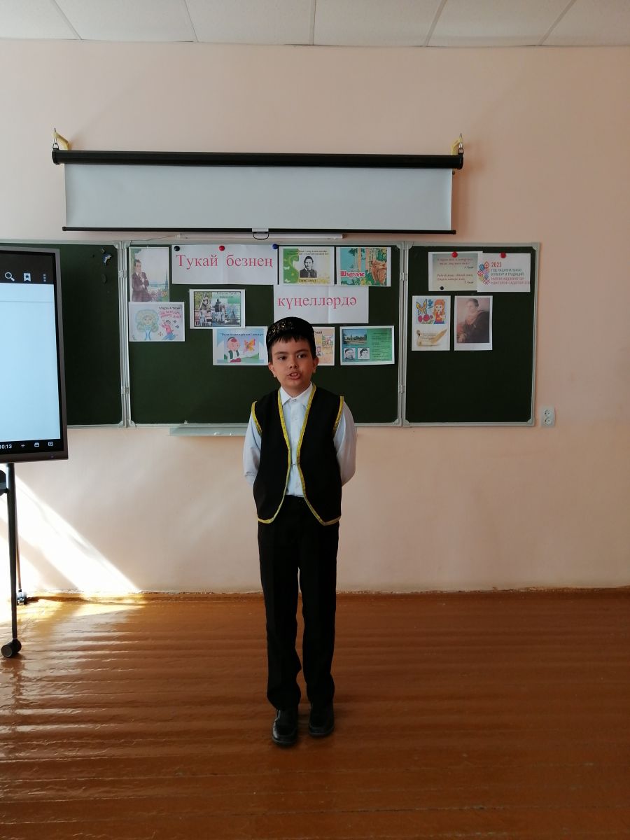 26 апреля весь мир отмечает День рождения выдающегося татарского поэта Габдуллы Тукая. И в нашей школе этот день отметили праздником поэзии “Тукай в наших сердцах”. В мероприятии приняли участие ученики начальных классов. Они совершили путешествие в мир стихов Тукая.