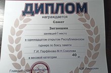 Поздравляем ученика 6 класса Зиганшина Самата , занявшего 1 место в одиннадцатом открытом Республиканском турнире по боксу памяти Г.И. Парфёнова-М.Н.Соколова. Весовая категория – 40кг. Желаем новых побед!