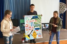 Сегодня в пришкольном лагере "Город Солнца" прошел конкурс плакатов ко Дню России. А так же ученики участвовали в конкурсно- игровой программе " Мисс и Мистер лагеря" . Во второй половине дня проводилась беседа на тему " Роль зрения в нашей жизни" и экологический марофон " Пластиковым бутылкам вторая жизнь" .Бүген "Кояш шәһәре" мәктәп яны лагеренда Россия көне уңаеннан отрядлар арасында плакатлар ясау бәйгесе уздырылды. Шулай ук " Лагерь патшасы һәм патшабикәсе" конкурсында катнашып, үз көчләрен сынадылар. Көннең икенче яртысында " Кеше тормышында күрүнең роле" темасына әңгәмә үткәрелде һәм " Пластик шешәләргә икенче тормыш" марофонында катнашып, укучылар пластик шешәләрдән эшләнгән бакча яны эшләнмәләрен тәкъдим иттеләр. -
