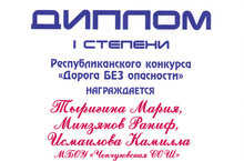 Коллективная работа обучающихся 4 Б класса приняла участие в Республиканском конкурсе творческих работ "Дорога без опасности" .Номинация " Игра-лото" и заняла почетное 1 место. Поздравляем победителей.