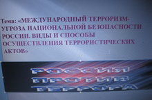 2-декабря в 9 «Б» классе прошел классный час на тему «Международный терроризм - угроза национальной безопасности России. Виды и способы осуществления террористических актов». Учащиеся познакомились с формами терроризма и его воздействия на людей. Была показана презентация с целью обучения правильным действиям в экстренных ситуациях. Учащимися были созданы памятки под названием «Правила поведения в случае террористической угрозы»