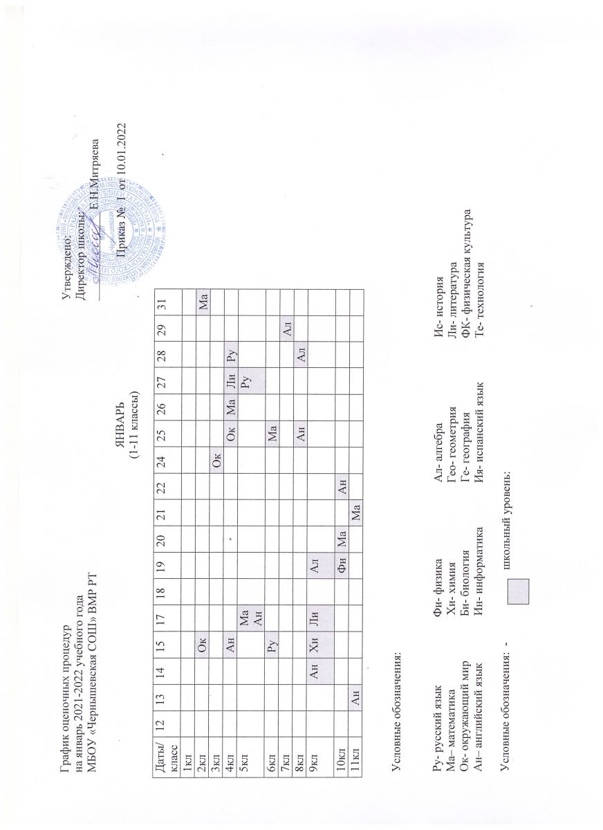 График контрольных работ. Январь, 2021-2022 учебный год.