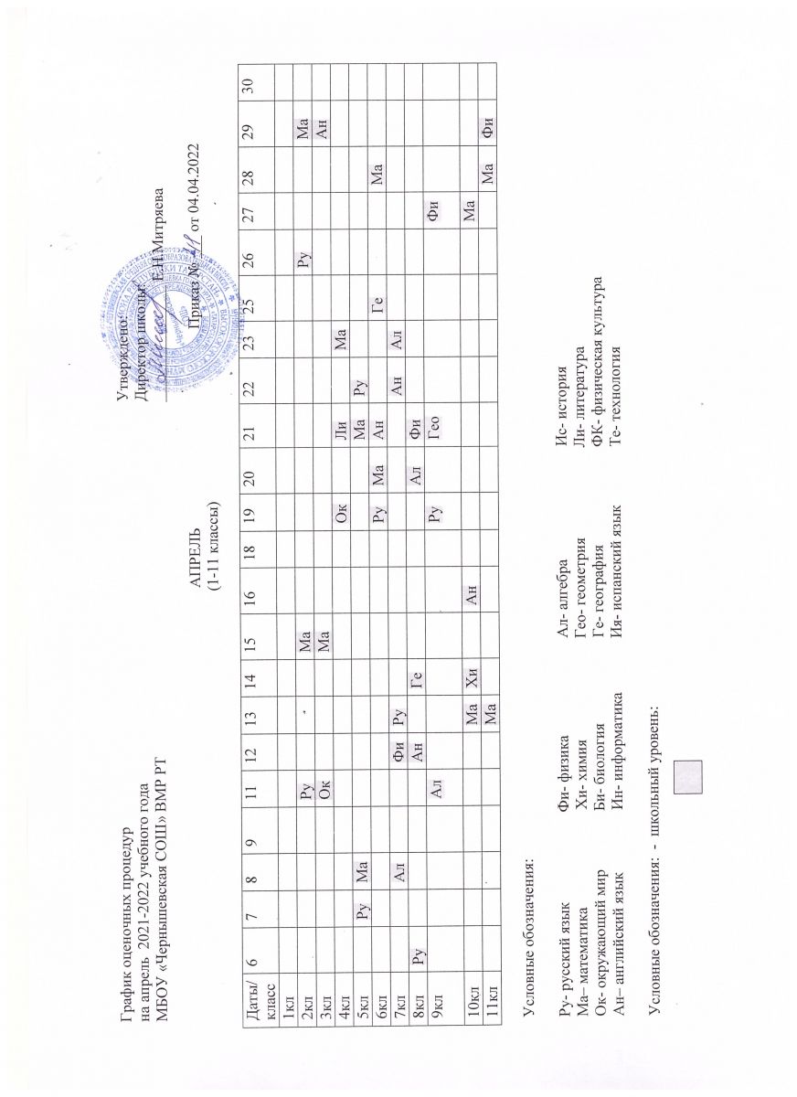 График оценочных процедур. Апрель. 2022-2023 учебный год