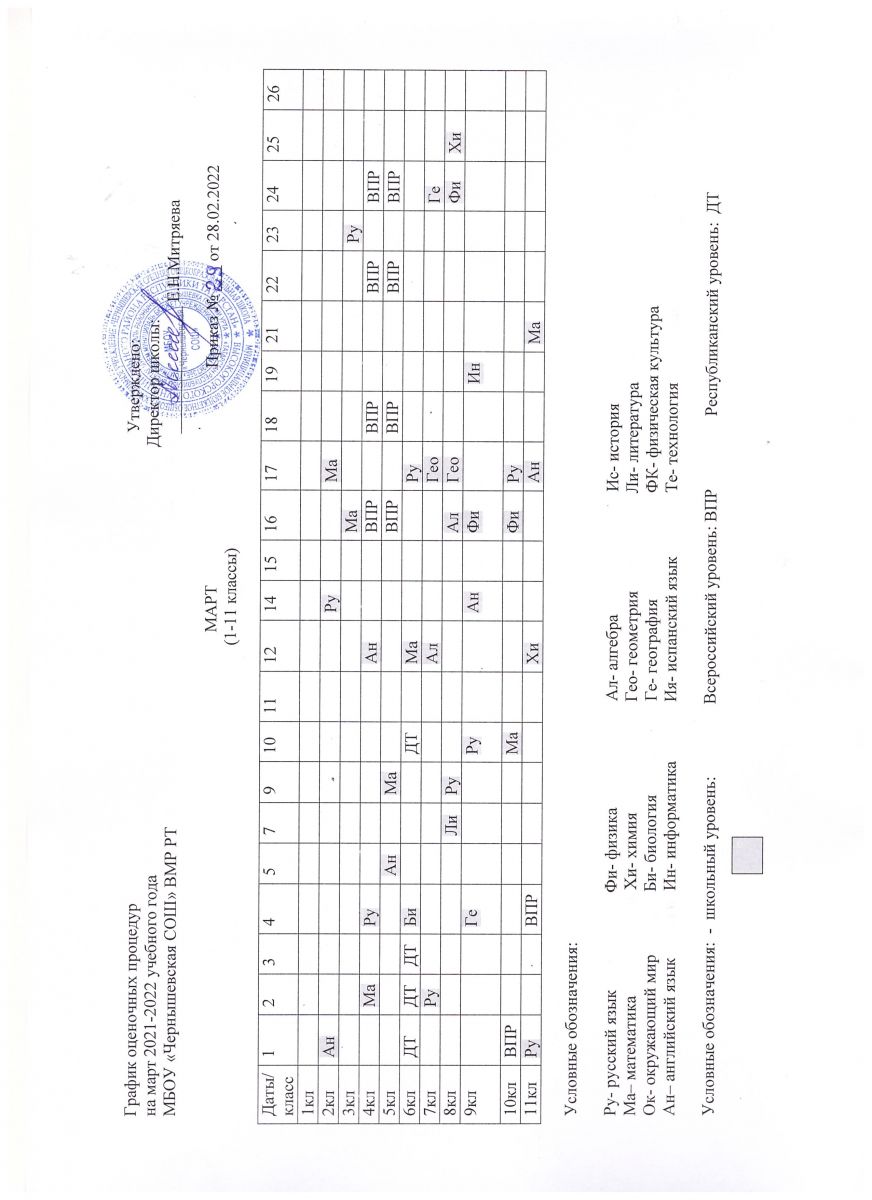 График оценочных процедур. Март. 2022-2023 учебный год.