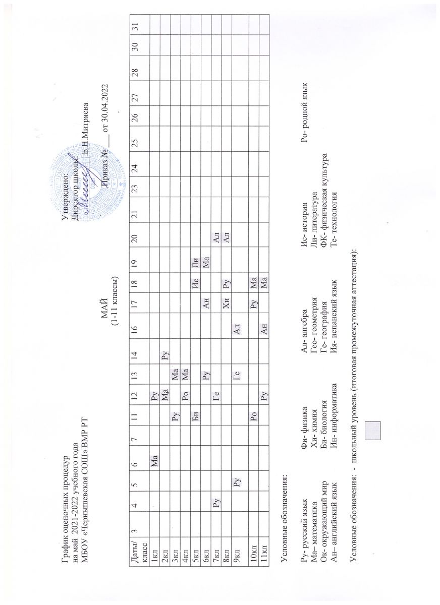 График контрольных работ. Май. Промежуточная аттестация. 2021-2022 учебный год.