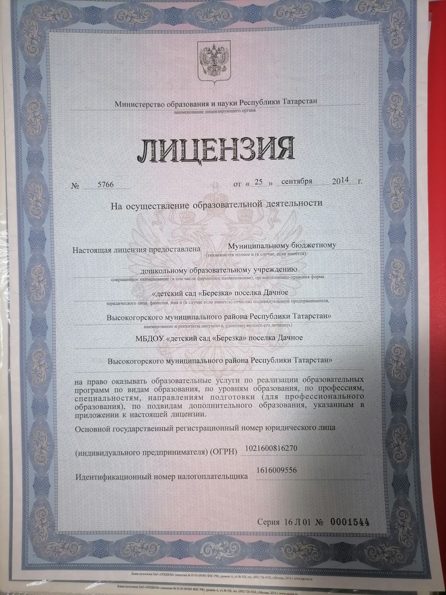 Муниципальное бюджетное дошкольное образовательное учреждение «детский сад «Березка» пос.Дачное Высокогорского муниципального района Республики Татарстан» / «Татарстан Республикасы Биектау муниципаль районының Дачное бистәсенең «Березка» балалар бакчасы мәктәпкәчә белем бирү муниципаль бюджет учреждениесе».