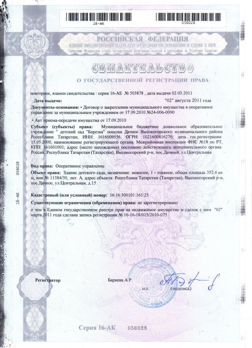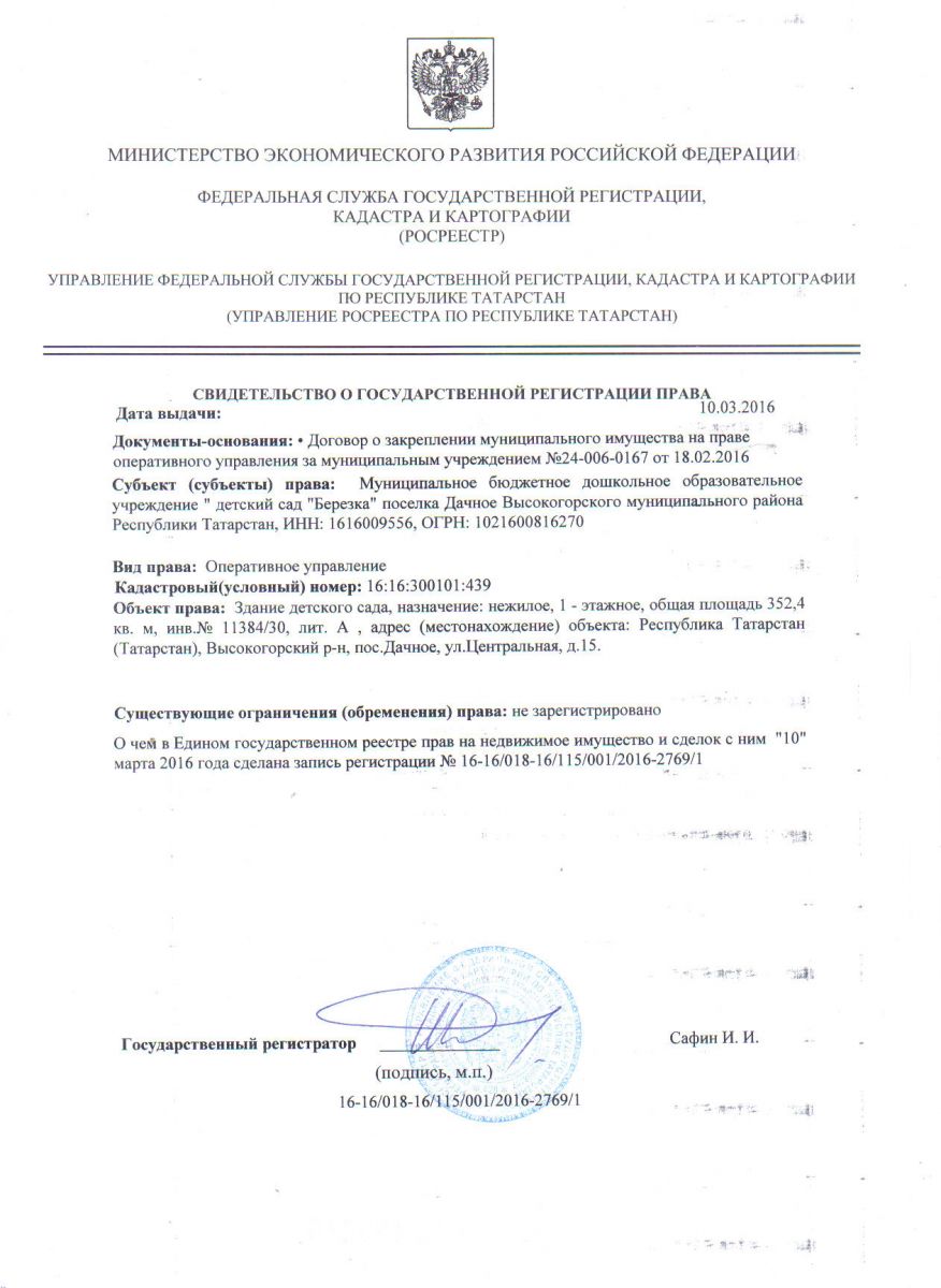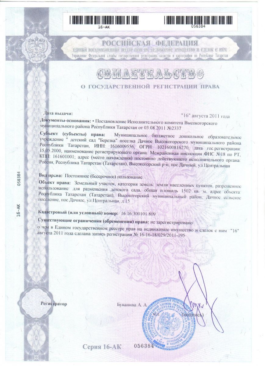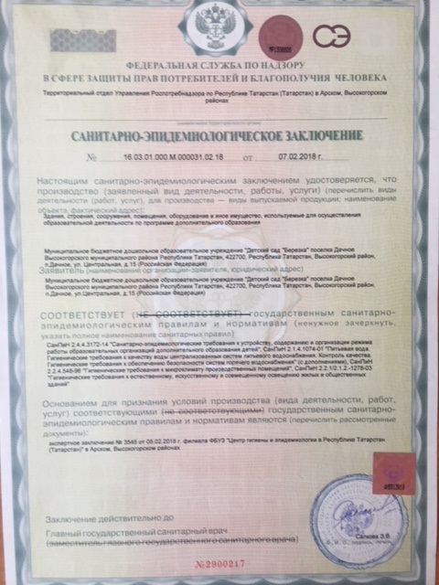 | Короткое название: | МБДОУ «детский сад «Березка» пос.Дачное Высокогорского муниципального района Республики Татарстан» |