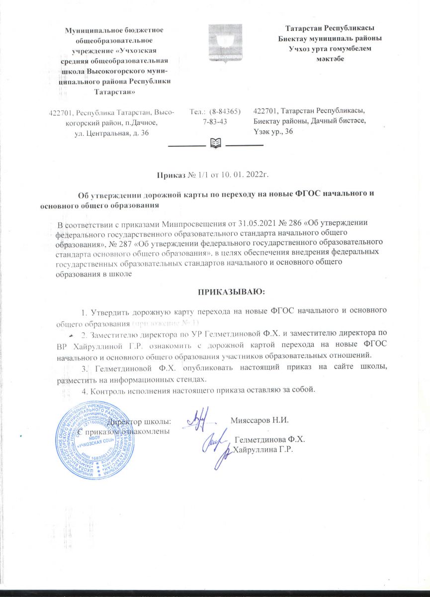 Приказ МО и Н РТ № под-1832/21 от 30.12.2021 "Об организации работы по введению обновленных ФГОС"