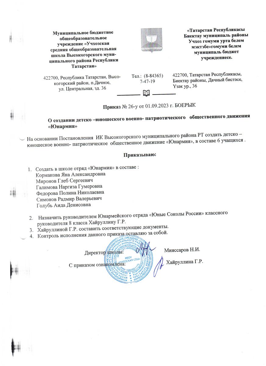 Муниципальное бюджетное общеобразовательное учреждение "Учхозская средняя общеобразовательная школа Высокогорского муниципального района Республики Татарстан"