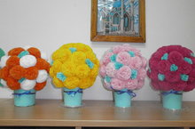 Төркемнәрдә ата-аналар арасында "Кәгазьдән ясалган иң матур чәчәк" дигән кул эшләре конкурсы уздырылды.Әниләр салфеткалардан, каты кәгазьдән бик матур чәчәкләр ясап килделәр. Кул эшләре белән киенү бүлмәләрен бизәдек.