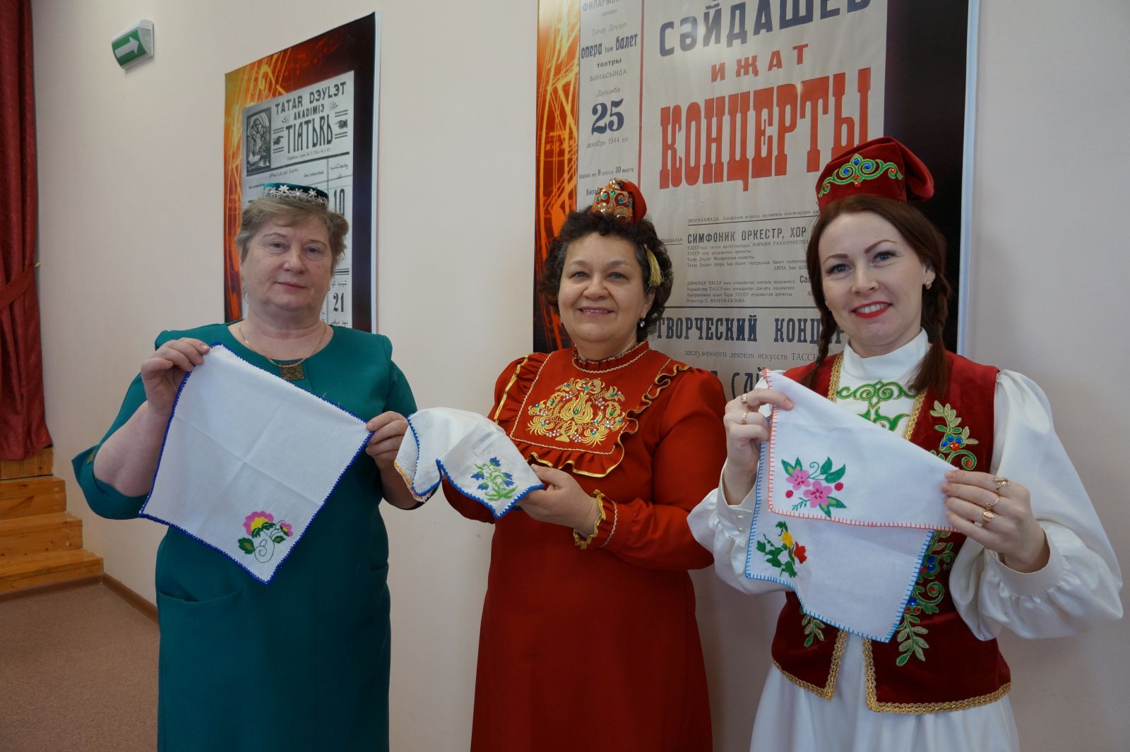 Салих Сәйдәшев музеенда кулъяулык чигү буенча мастер -класс. Мастер-класс по вышиванию платочков татарскими узорами в музее Салиха Сайдашева.