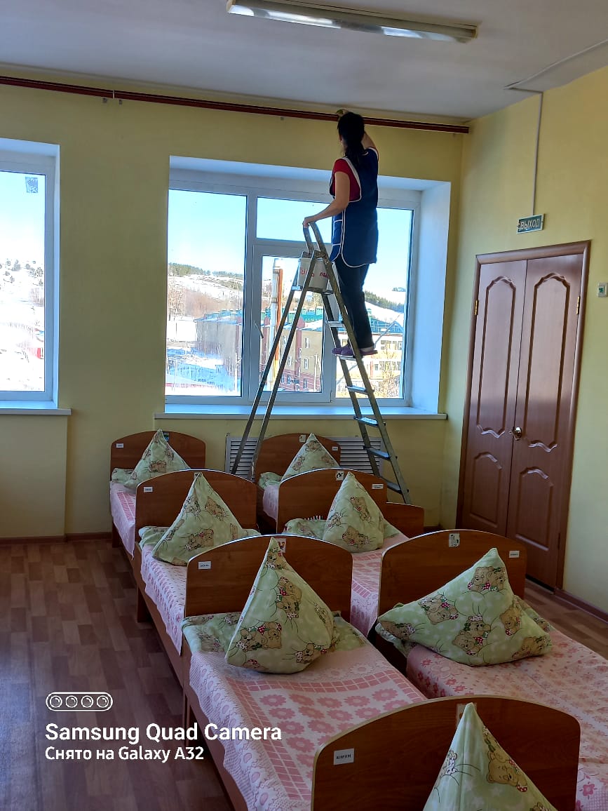 Весенняя генеральная уборка комнат детского сада. Бүлмәләрдә язгы җыештыру эшләре.