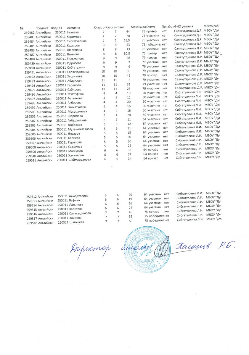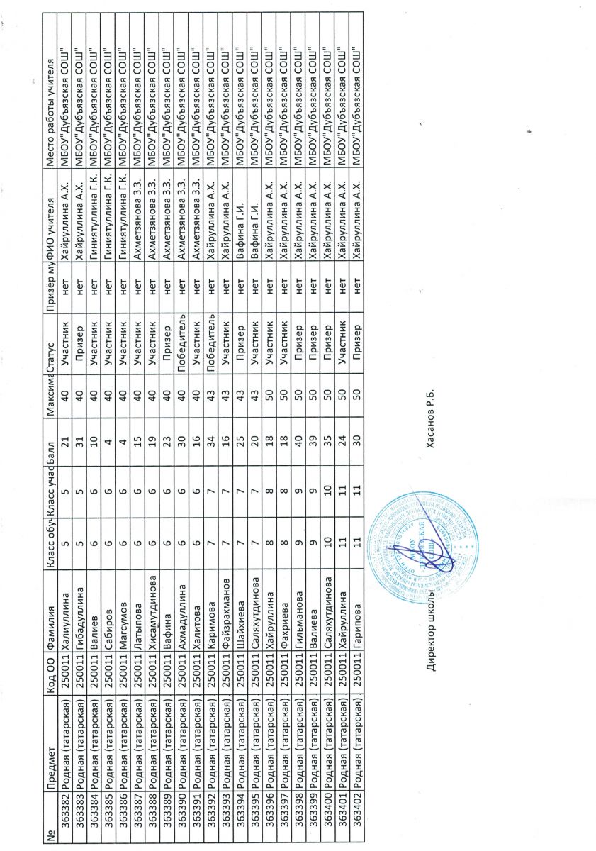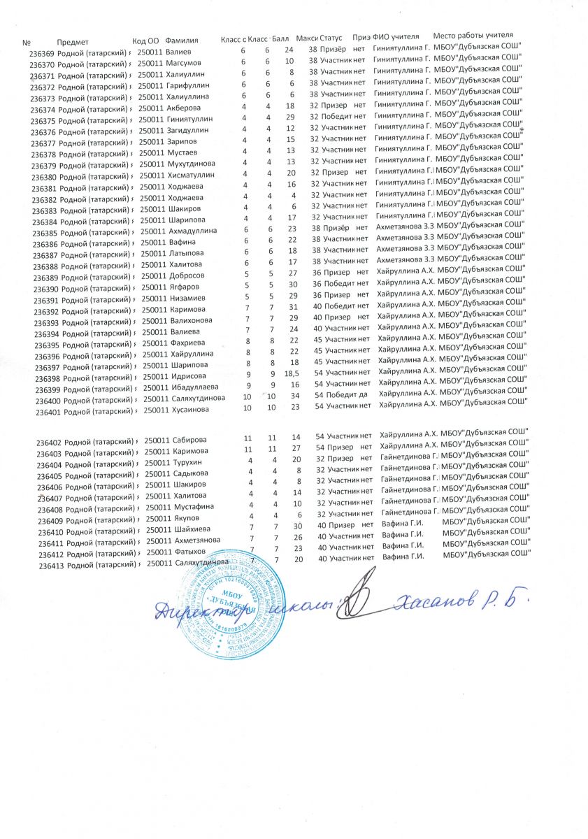 Протокол по родному (татарскому) языку для обучающихся с родным языком обучения