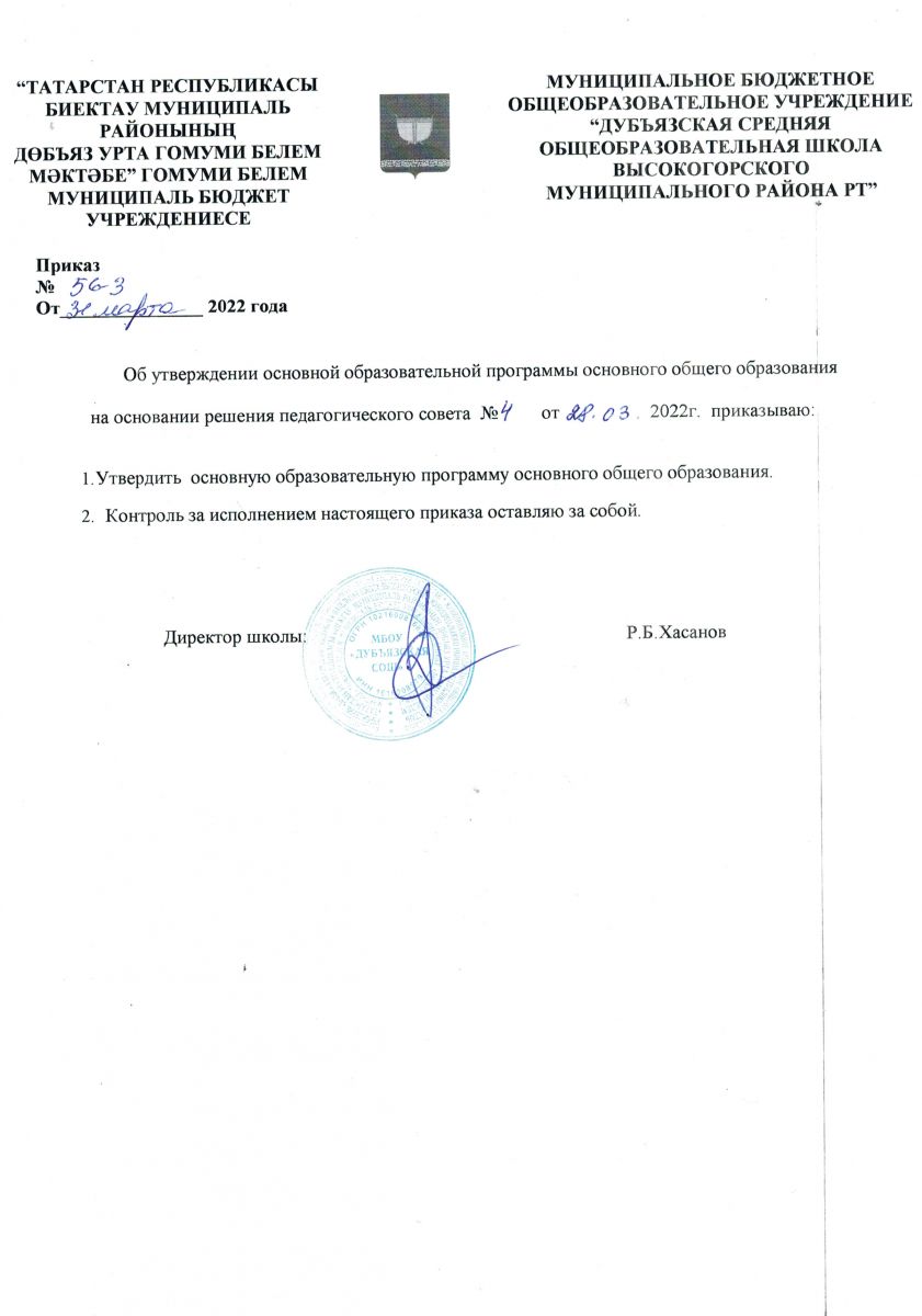 МБОУ «Дубъязская средняя общеобразовательная школа Высокогорского муниципального района РТ»