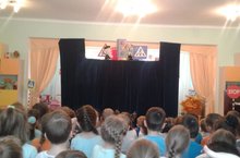Сегодня в нашем детском саду было показано театрализованное представление по сказке «Приключения кота Базилио в стране Светофория». Цели таких мероприятий: уточнять и закреплять знания детей о правилах дорожного движения . Привлечь детей к участию в пропаганде правил безопасного поведения на улицах и дорогах.