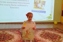 В детском сад прошло мероприятие, посвященное творчеству Л.Толстого. Литературную гостиную посетили воспитанники старшей, татарской и подготовительных групп в количестве 68 человек. Дети читали басни, рассказы, слушали вальс Л.Толстого и смотрели мультимедийную презентацию -