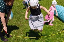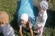 Балалар белән саф һавада төрле спорт уеннары уйнадык.