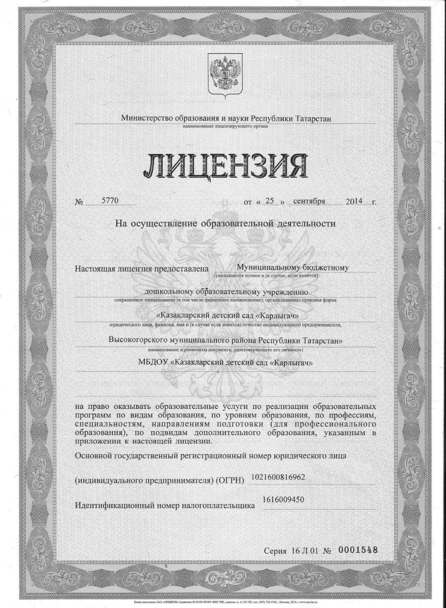 | Короткое название: | МБДОУ "Казакларский детский сад "Карлыгач" Высокогорского муниципального района РТ |