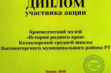 Наша школа была награждена дипломом за участие в акции "Музейная весна Татарстана 2015"