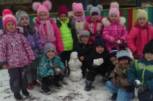Как были рады дети первому снегу!!! Сколько веселья и радости было сегодня на прогулке! Снежки слепили, с ними поиграли. А как же Снеговик? Конечно, и его слепили! Совместные игры очень сближают детей!