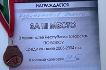 С 22 февраля по 25 февраля в Республике прошло первенство Республики Татарстан по боксу среди юношей 2003-2004 гг.р. В нем приняли участие и учащиеся нашей школы: Габидуллин Имир и Хузиахметов Камиль. Ребята заняли почетное 3 место, были награждены грамотами и медалями. Они воспитанники тренера Сагитова М.М. Поздравляем!!!!