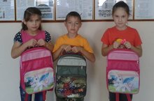 Продолжается акция "Помоги собраться в школу", 27 августа были вручены портфели второклассникам.