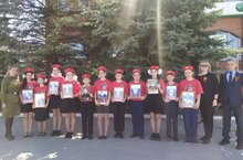 Учащиеся 5 класса принимают участие в районном параде в честь Великой Победы.