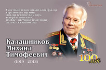 Калашников Михаил Тимофеевич – выдающийся советский и российский конструктор автоматического стрелкового оружия, главный конструктор – начальник бюро по стрелковому оружию ОАО «Концерн «Ижмаш», генерал-лейтенант. На вооружении Советской и Российской армии оружие М.Т. Калашникова состоит около 70 лет.