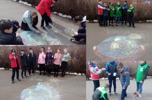 Ребятам было предложено нарисовать на асфальте школьного двора экологические плакаты.