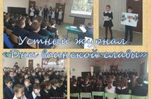 Для учащихся 3-7 класс в школе прошло мероприятие "Усный журнал "Дни воинской славы". Учащиеся подготовили материал о героях Отечества. В этот день ребята вспоминали героев разных времен, тех, кто прославил русскую землю.
