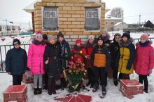 В честь Дня героя Отечества отряд юнармейцев возложил к памятнику Славы в поселке венок, почтили минутой молчания.
