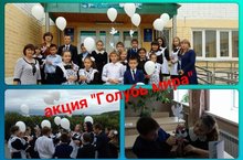 21 сентября 2017 года наша школа присоединилась к акции «Голубь мира» в честь празднования Международного дня мира. Целью данного мероприятия является: создание единого Духовного пространства в странах Евразийского Союза, и дружественных странах на основе сохранения памяти победы над фашизмом во Второй мировой войне 1939-1945 гг. и Великой отечественной войне 1941-1945 гг. Акция «Голубь мира» очень важное мероприятие, одно из тех, что позволяет нам стать сплоченными и еще раз напомнить о роли истинных человеческих ценностей в современном мире. Вместе с воздушными шарами участники акции отпустили в синее небо белоснежных голубей, на крыльях которых дети написали имена фронтовиков — ветеранов Великой Отечественной войны нашего сельского поселения. Это зрелище было незабываемым и трогательным. Никто из присутствующих не сомневался, в том, что бумажные птицы найдут своих адресатов.