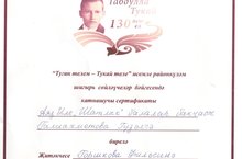 "Туган телем- Тукай теле"исемле районкүләм шигырь сөйләү бәйгесе 26.04.2016