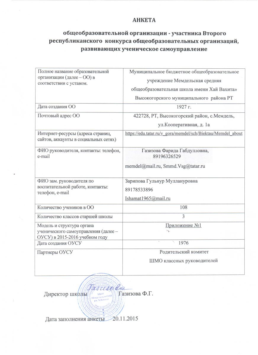 Короткое название: МБОУ "Мемдельская СОШ имени Хай Вахита"
