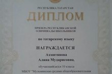 Ахмитянова Алина, ученица 10 класса стала призером в Республиканской олимпиаде по татарскому языку. Поздравляем Алину и желаем больших успехом в учебе. Ахмитянова Алинә, 10 класс укучысы, татар теле фәне буенча Республика олимпиадасында призер булды. Алинәне шушы зур уңышы белән тәбрик итәбез һәм укуында тагын да зур үрләргә ирешүен теләп калабыз. 01.02.2018