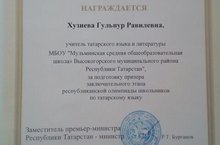 Ученица Хузиевой Г.Р. стала призером в Республиканской олимпиаде по татарскому языку. Поздравляем Гульнур Равилевну и желаем дальнейших успехов в работе. Хуҗиева Гөлнур Равил кызының укучысы татар теле фәне буенча Республика олимпиадасында призер булды. Гөлнур Равилевнаны ирешелгән уңышы белән котлыйбыз һәм эшендә уңышлар теләп калабыз. 01.02.2018