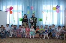 Малыши тожже могут отметить День Защитника Отечества. Сегодня к нам на утренник пришел солдат. Он взял с собой детей в военный поход, где научил детей пройти все трудности, которые встречались у них на пути. В конце проводили солдата, а сами улетели на самолёте обратно домой.