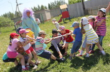 В День защиты детей был организован настоящий праздник. С утра в детском саду детей ожидали веселые приключения. Злой пират Бармалей украл из детского сада "элексир здоровья" и ребята отправились на его поиски. Сначала их встретил Старичок-Лесовичок, который указал им дорогу после того как дети поиграли с ним и угадали все лесные загадки. После детей ждала встреча с Водяной, с ней ребята пограли в рыбалку, и выполнили все задания от Водяной. Когда ребята наконец нашли пирата Бармалея, им пришлось выполнять самые трудные задания: "бег в калошах", передай мяч через голову, бег "змейкой", прыжки в мешках, перетягивание каната. Бармалей так развеселился, что решил стать добрым и отдать весь "элексир здоровья" детям.