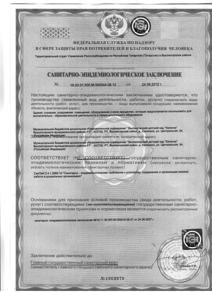 Санитарно-эпидемиологическое заключение