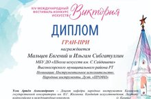 Поздравляем Дуэт преподавателей - Мальцев Евгений Викторович и Сибгатуллин Ильхам Ильгизович, получивших ГРАН - ПРИ на