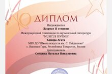 2. Адылова Ясмина - Лауреат 3 степени (преподаватель Тремасова-Золотарева Мария Викторовна)