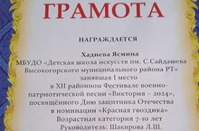 Сегодня в Высокогорском ДК состоялся праздничный концерт ежегодного районного фестиваля- конкурса " Виктория", в котором Хадиева Ясмина стала лауреатом 1 степени (преподаватель Шакирова Л. Ш.) Поздравляем! Молодец!!!