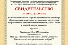 преподаватель по классу вокала и фортепиано Шакирова Лира Шаукатовна выступила на Республиканском научно-практическом семинаре, проходивший в г. Набережные Челны.