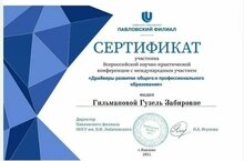 Преподаватель по классу хора и фортепиано Гильманова Гузель Забировна приняла участие во Всероссиской научно-практической конференции с международным участием "Драйверы развития общего и профессионального образования".